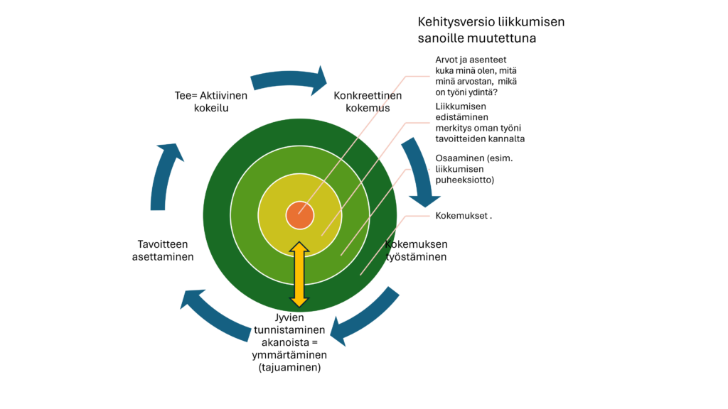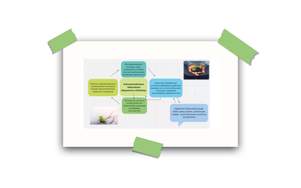 Kuva 3. Kehittämistiimin jäsenen näkemys kokonaistavoitteesta; kokonaisvaltaisen liikkumiskokemuksen ohjaaminen.