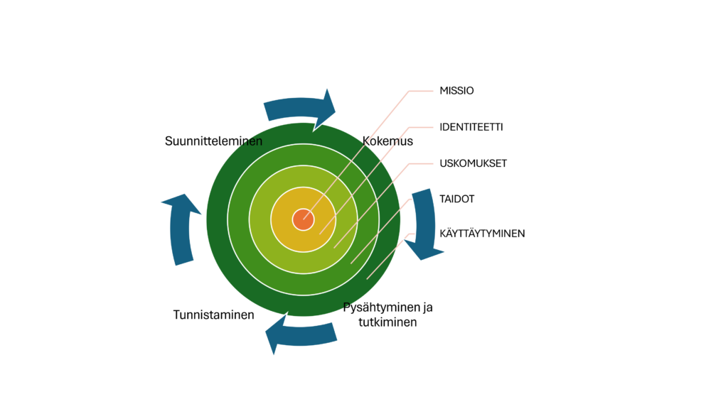 Työkalun kehittämisessä hyödynsimme kokeilevan kehittämisen ja spiraalimallin periaatteita, kuten iteratiivisuutta, jatkuvaa oppimista, reflektointia sekä suunnanmuutosten hyväksymistä. Tässä artikkelissa kuvaamme kehittämisprosessin kulkua, jossa korostuivat oppiminen, ennakko-oletusten uudelleen arviointi sekä tunteiden ja epävarmuuden hyväksyminen osana yhteisen ymmärryksen rakentamista.